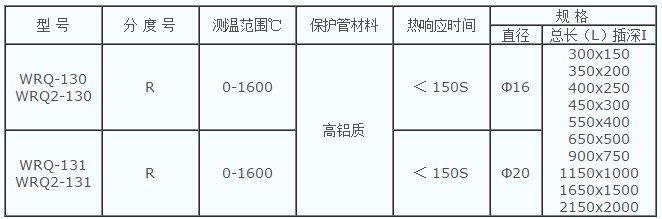 鉑銠13-鉑(R型熱電偶)為貴金屬熱電偶。偶絲直徑規(guī)定為0.5mm,允許偏差-0.015mm,其正極(RP)的名義化學(xué)成分為鉑銠合金,其中含銠為13%,含鉑為87%,負(fù)極(RN)為純鉑,長(zhǎng)期最高使用溫度為1300℃,短期最高使用溫度為1600℃。